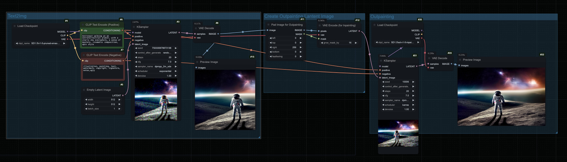 工作流是 ComfyUI 中最核心的概念,简单来说就是由多个节点(Node)连接组成的图形化界面,用来描述 AI 绘图的整个处理过程。就像搭建乐高积木一样,我们通过组合不同功能的节点,来实现各种 AI 绘图效果。
