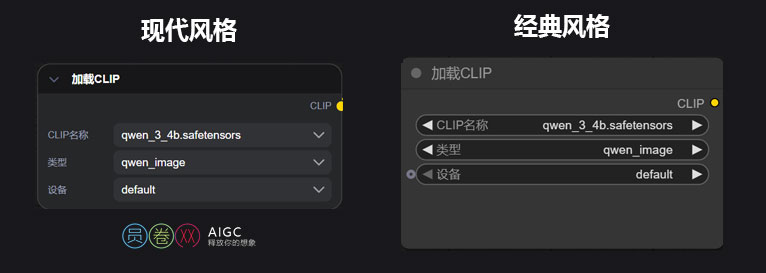 – 现代节点设计(Vue节点):当开启与关闭时,是在现代与经典样式下进行切换。现代风格是基于DOM的渲染,具有增强的交互性、原生浏览器功能和更新的视觉设计。经典风格是传统的画布渲染。