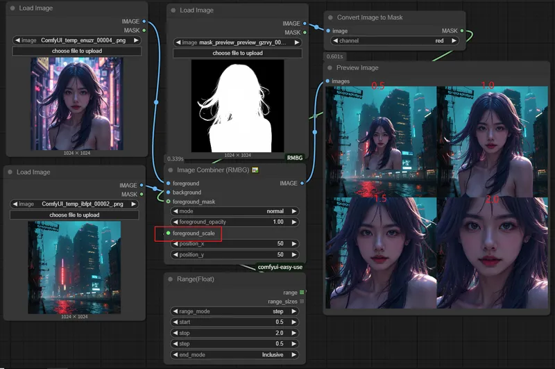 前景缩放 (Foreground Scale):调整前景图像的大小,Foreground Scale>1.0放大,Foreground Scale<1.0缩小