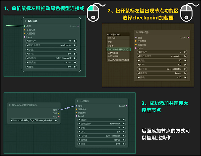 动态切换:在工作流中可添加多个Checkpoint加载器,用于不同任务的模型切换。