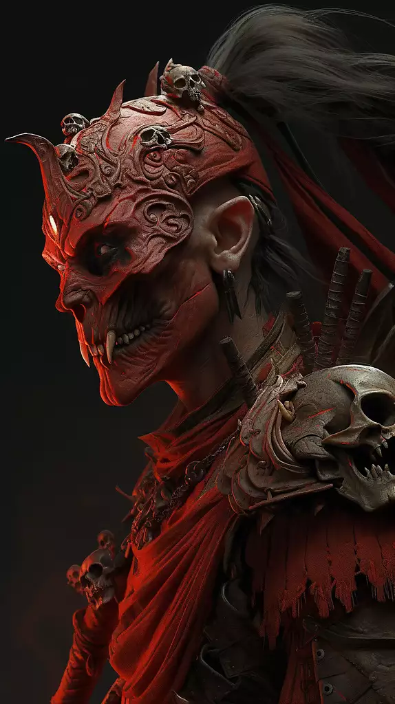 horseman of the apocalypse - War,in style of red and fire,detailed face,lush environment,cinematic light,apocalypsecore,character portrait by Annie Leibovitz,retouched by Pratik Naik