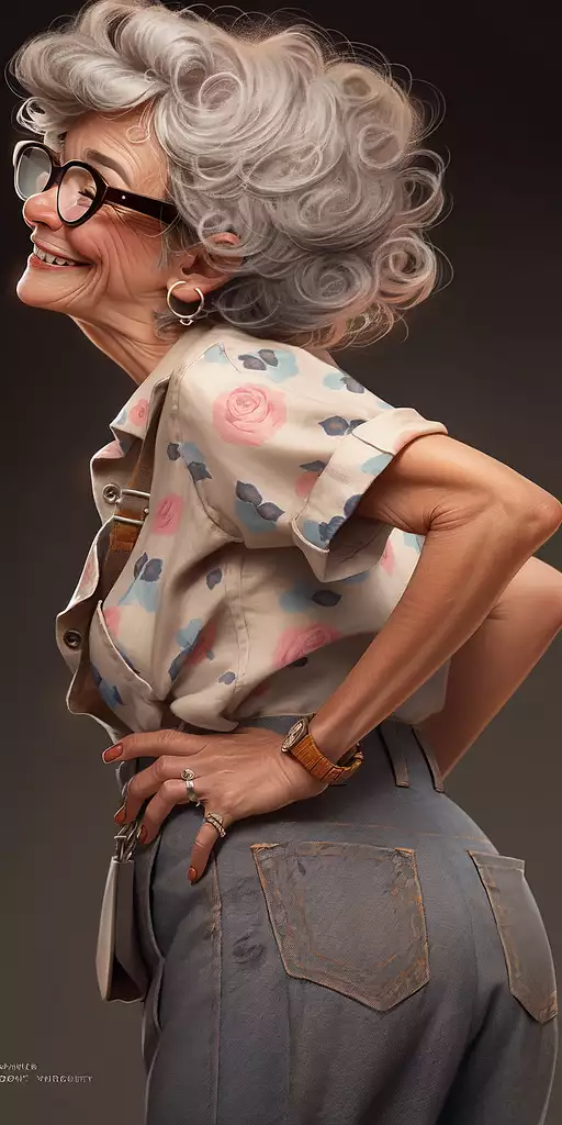 Grandma,dynamic pose,anime waifu(65-years-old)-hot-mammy-flirty-bodylanguage,fit-thick-build,gorgeous perfect face,in the style of realistic and hyper - detailed renderings,kawaii,zbrush,hyper - realistic oil,contoured shading