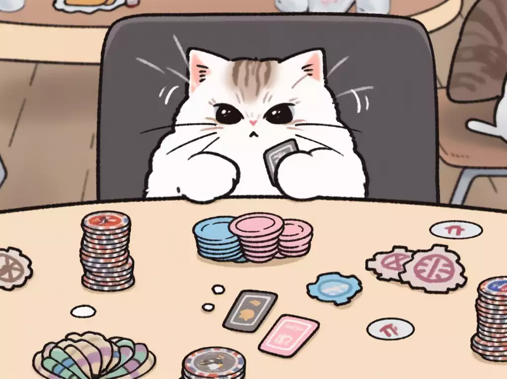 一只猫正试图抓住桌子上的扑克筹码,风格有flickr、xmaspunk、宏伟的规模、美联社照片、bloomcore、cottagecore、tumblewave