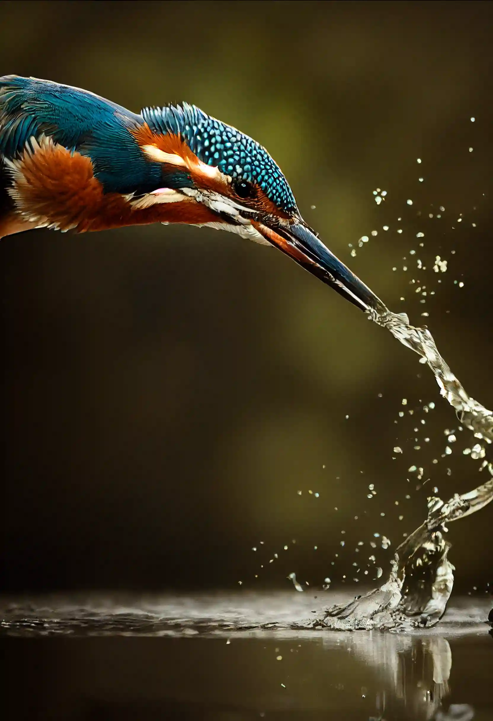 Beautiful kingfisher catching a fish,cinematic lighting --beta --ar 2:3 --upbeta