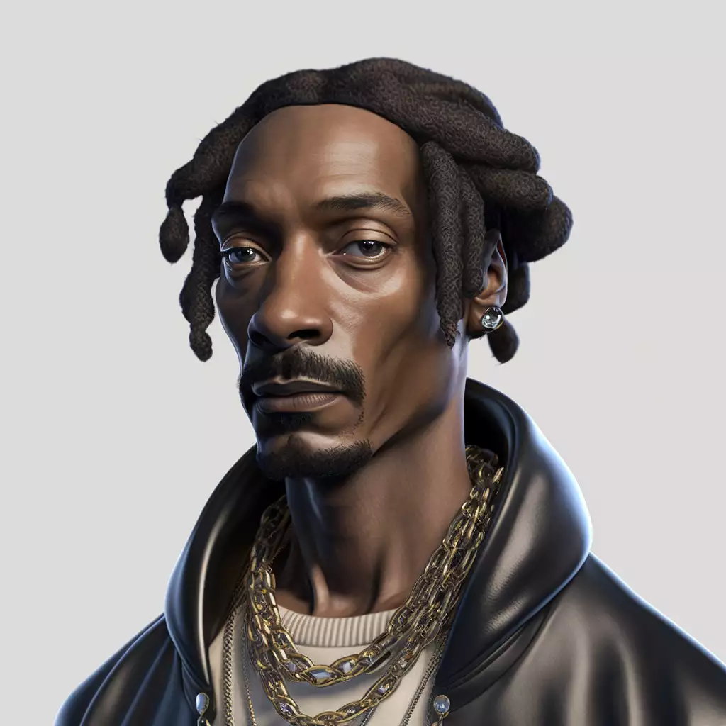 hasdx风格,釉面3D渲染(极其详细的CG),Snoop Dogg,pixar风格,3D风格,迪士尼风格,白色背景,8k,美丽,有纹理的皮肤,细致的眼睛,高分辨率